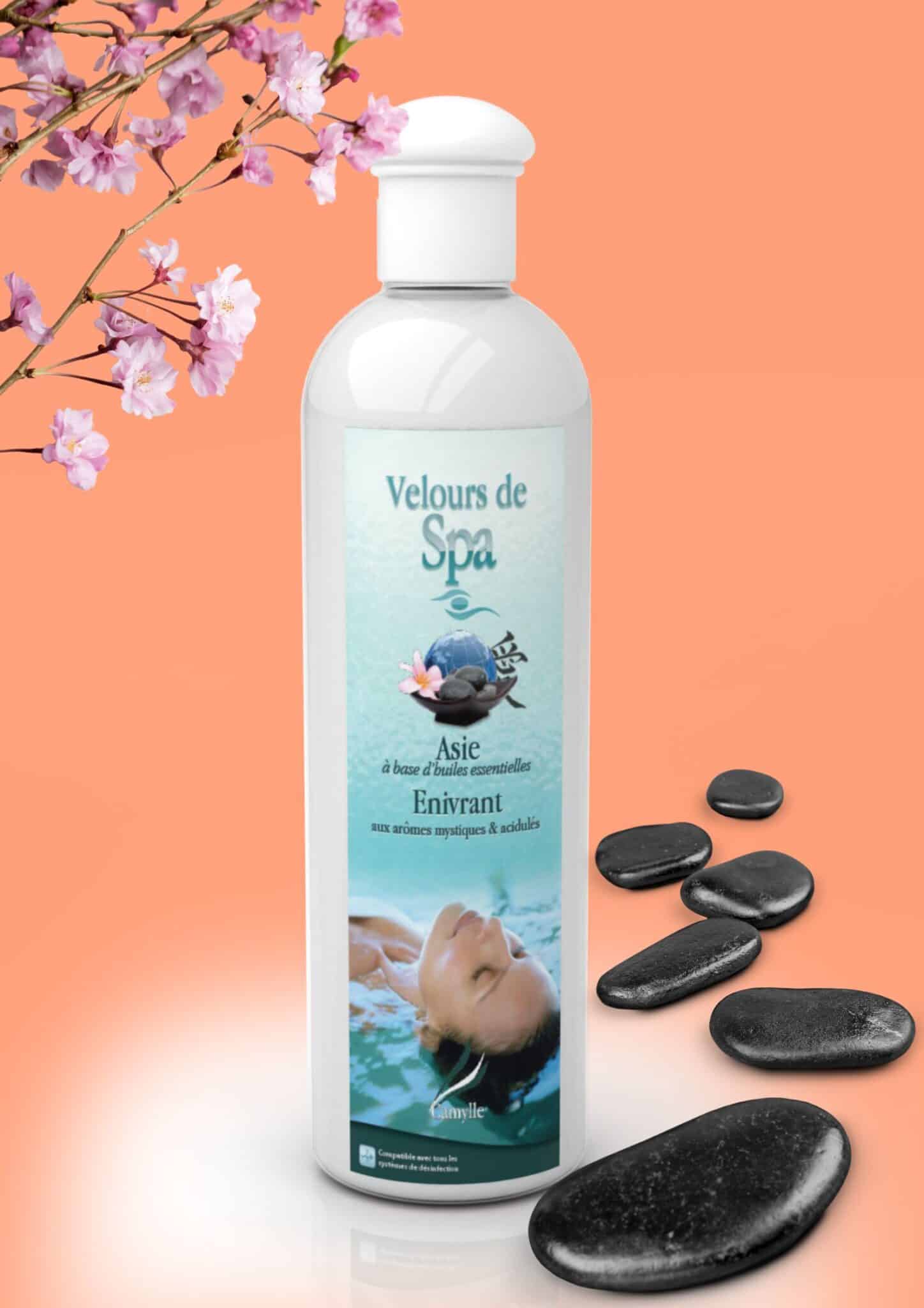 VELOURS DE SPA de CAMYLLE a été conçu pour se mélanger parfaitement à l’eau sans interagir sur le système de désinfection. Les huiles essentielles sont solubilisées dans une solution d’alcool de cosmétologie spécialement développée par les laboratoires Camylle, ce qui rend le produit volatile à 100%. Aucune trace ne subsiste dans le spa, les cartouches filtrantes ne se bouchent pas et le système de désinfection ne s’encrasse pas. Dilué à raison de deux à trois bouchons par bain de Spa (20 à 30ml), il apporte une dimension supplémentaire au bain grâce à la puissance curative des huiles essentielles. VELOURS DE SPA de CAMYLLE est aujourd’hui considéré par les fabricants et distributeurs de spas les plus réputés comme une référence.